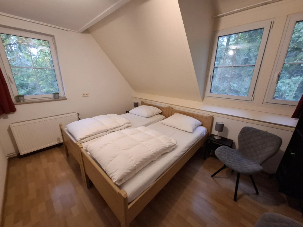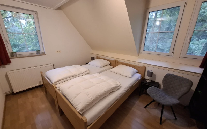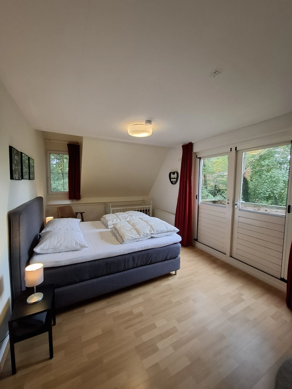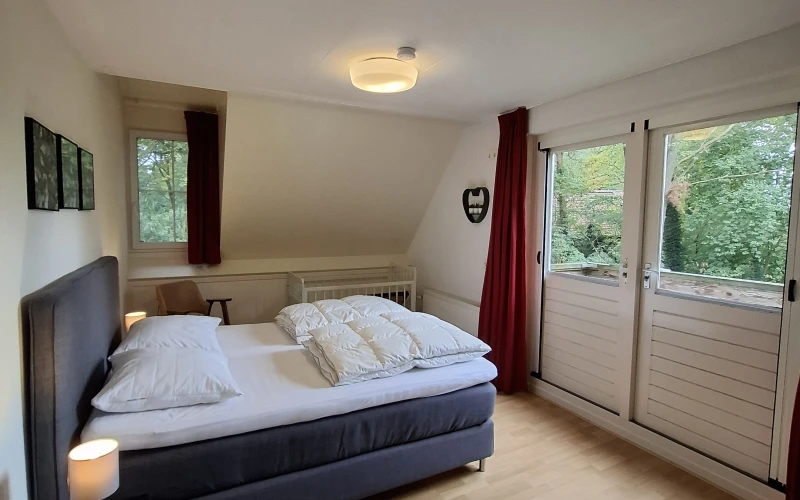 Op de begane grond vindt u ook de slaapkamer met een comfortabel tweepersoons boxspringbed en de luxe badkamer, waar u kunt kiezen voor een ontspannen bad of een verfrissende douche. Boven zijn er nog twee ruime slaapkamers, elk voorzien van boxspringbedden, en een extra toilet. Ook voor de allerkleinsten is gezorgd met een kinderbedje op de verdieping.